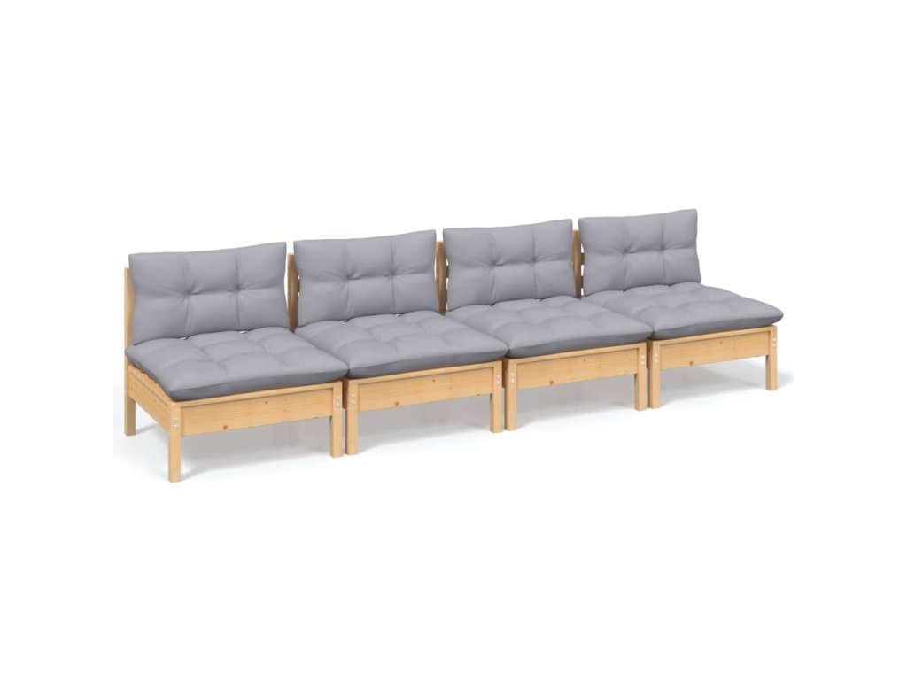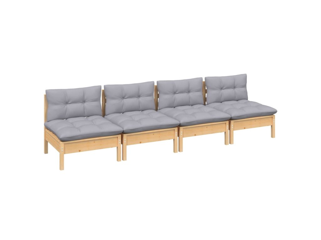 4místná zahradní pohovka s šedými poduškami masivní borovice 3096123