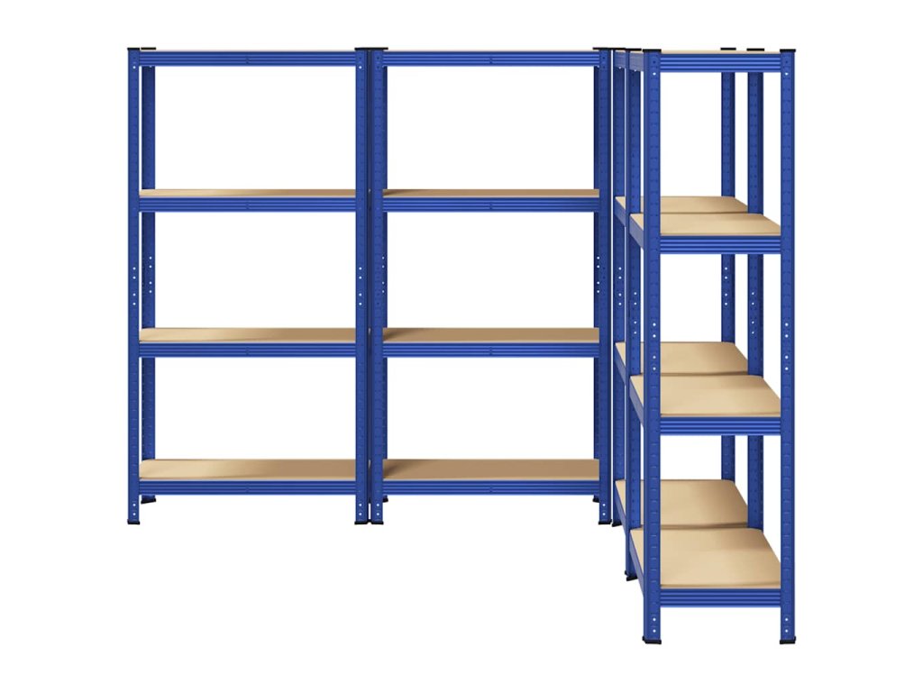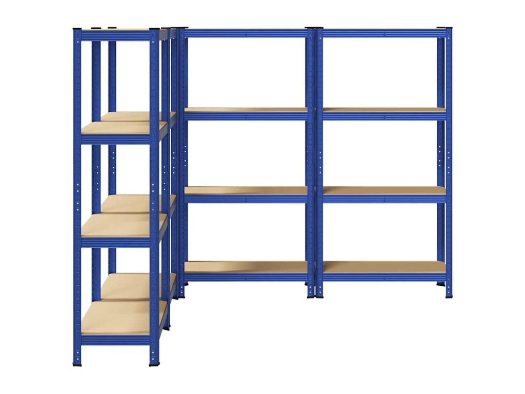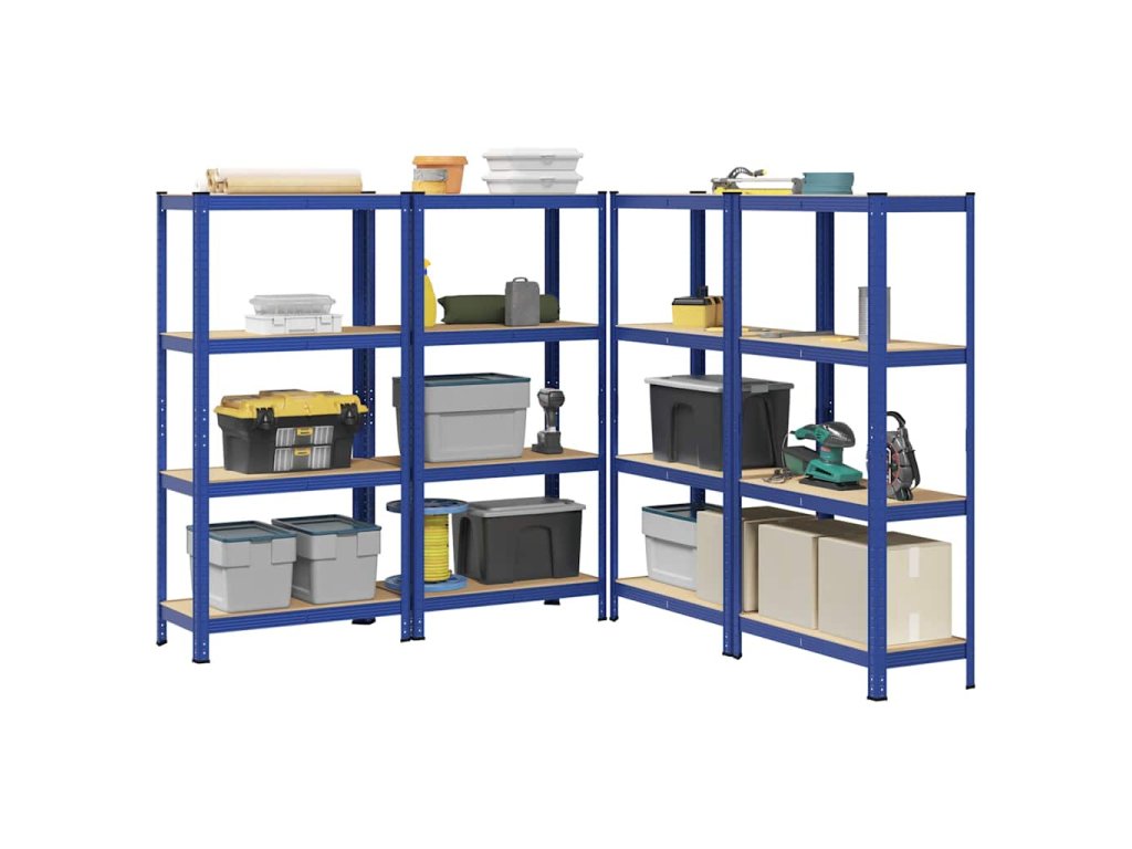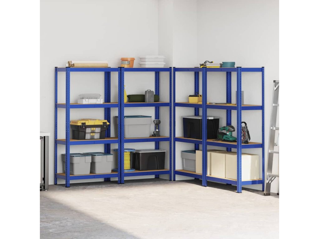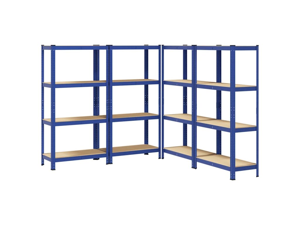4patrové úložné regály 4 ks modré ocel a kompozitní dřevo 3307581