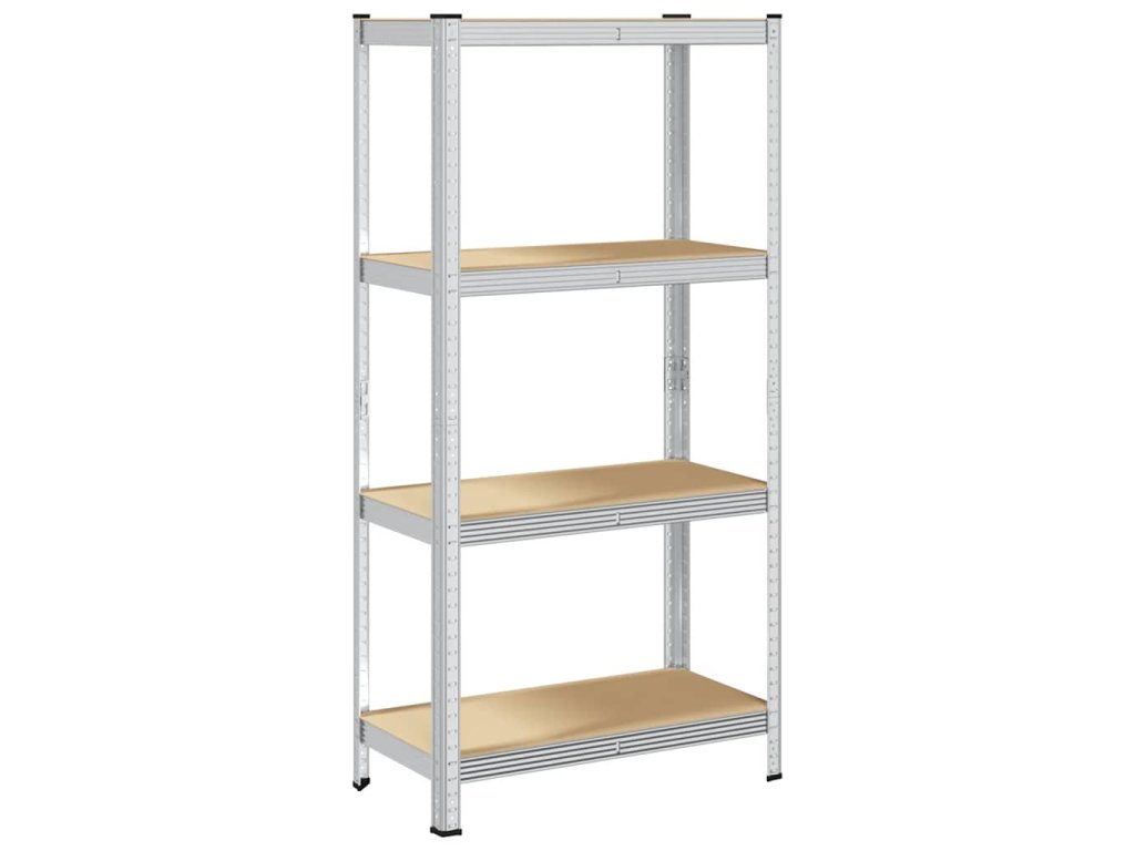 4patrový úložný regál stříbrný ocel a kompozitní dřevo 4016932