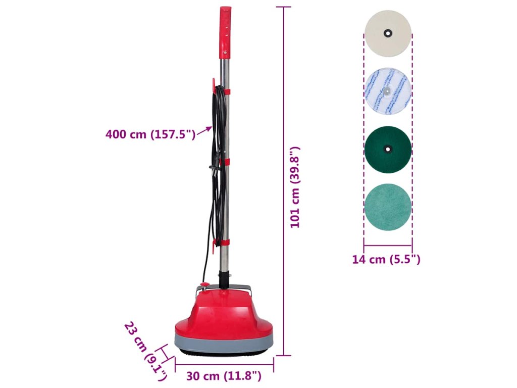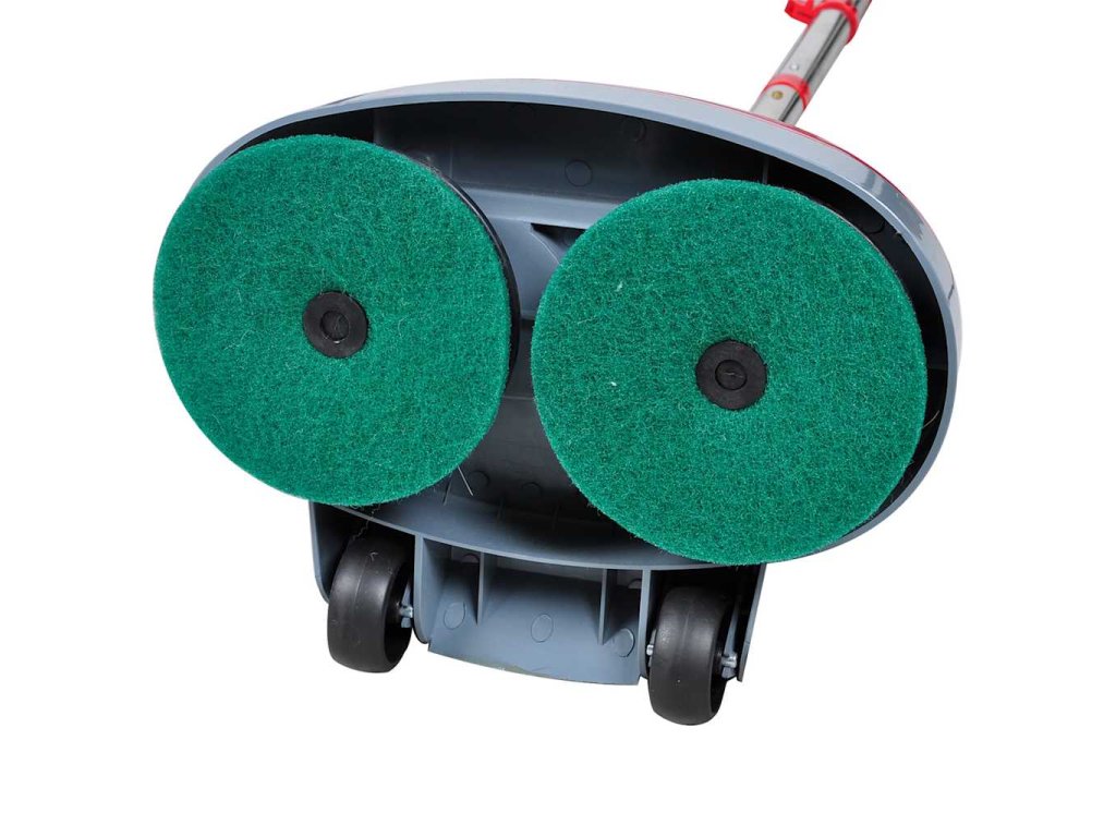 Tento stroj na čištění a leštění podlahy se pyšní 5 funkcemi: snadno drhne, vyhlazuje, voskuje, leští a čistí tvrdé podlahy, dřevěné podlahy i koberce. Tento čistič je obzvláště vhodný pro použití v malých obchodech / salonech, kde by se s normálně velkým strojem na čištění dalo jen těžko manévrovat mezi nábytkem a dalšími předměty. Je vybaven dvěma hlavami, které se otáčejí v rychlosti 400 rpm proti sobě, aby tak bylo dosaženo rychlého a efektivního úklidu.