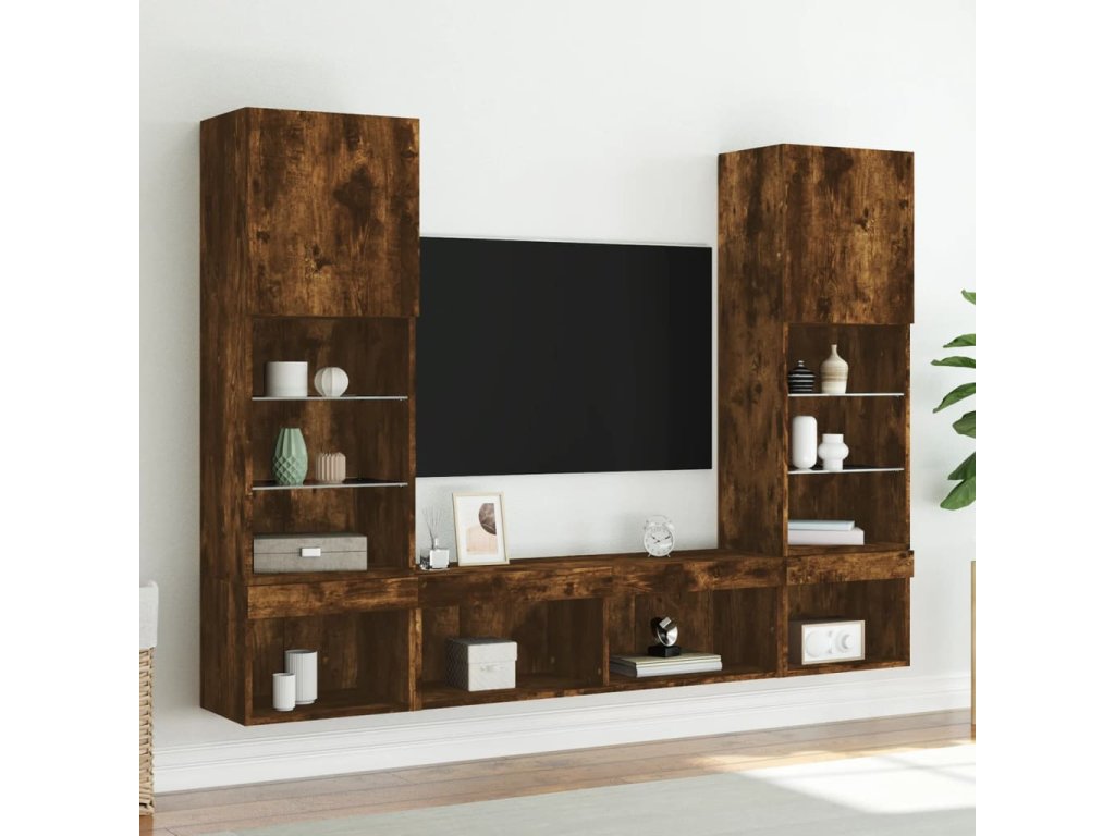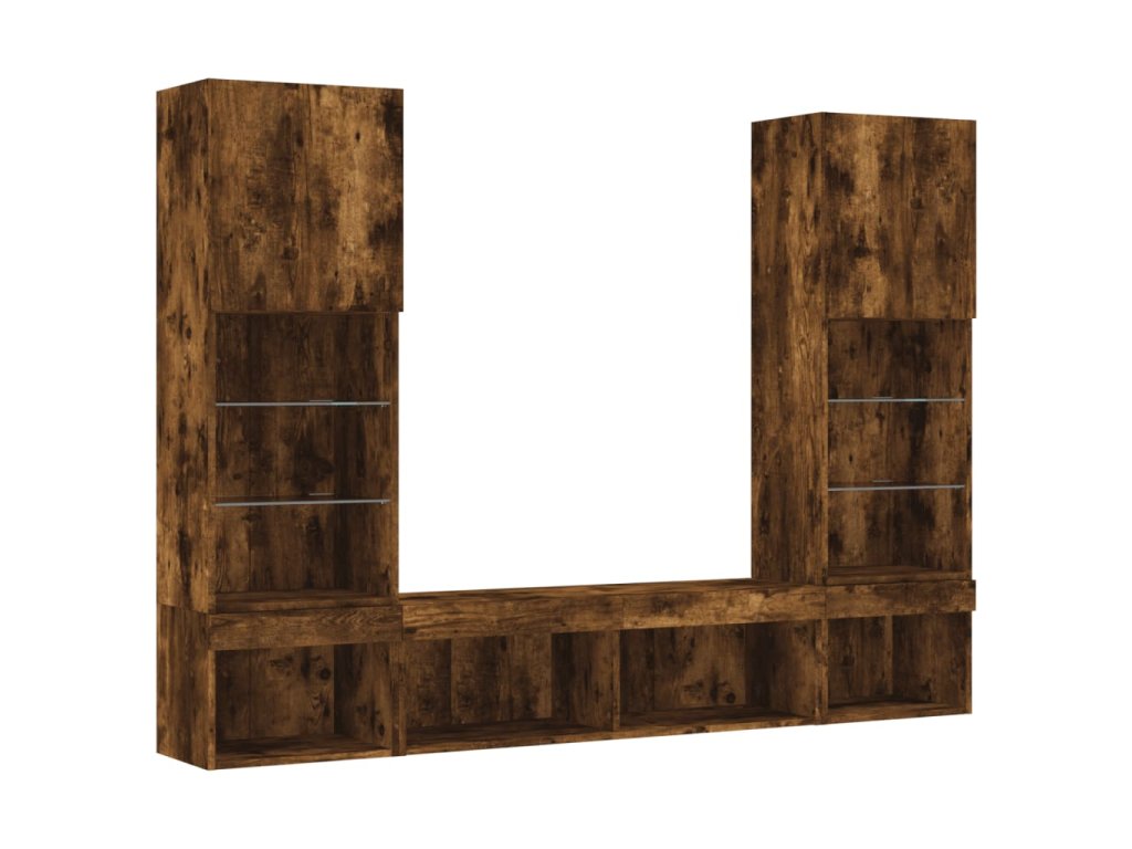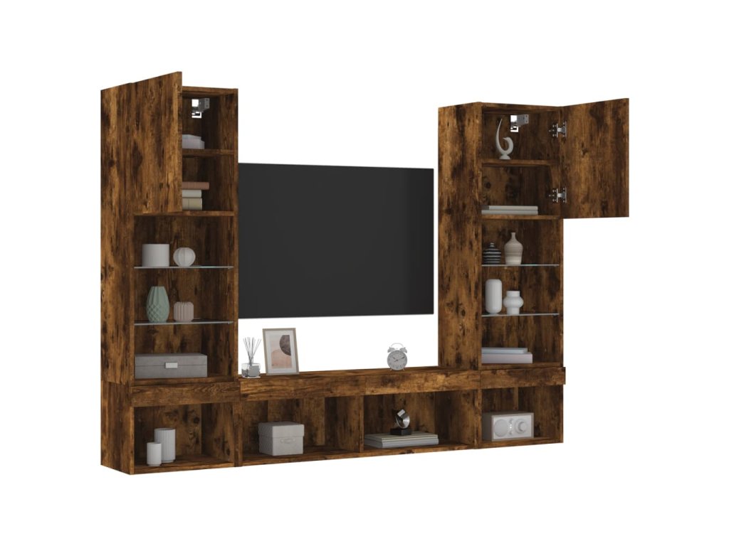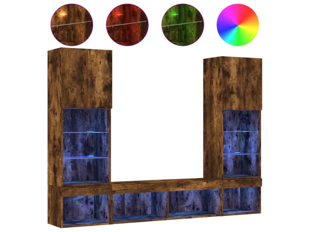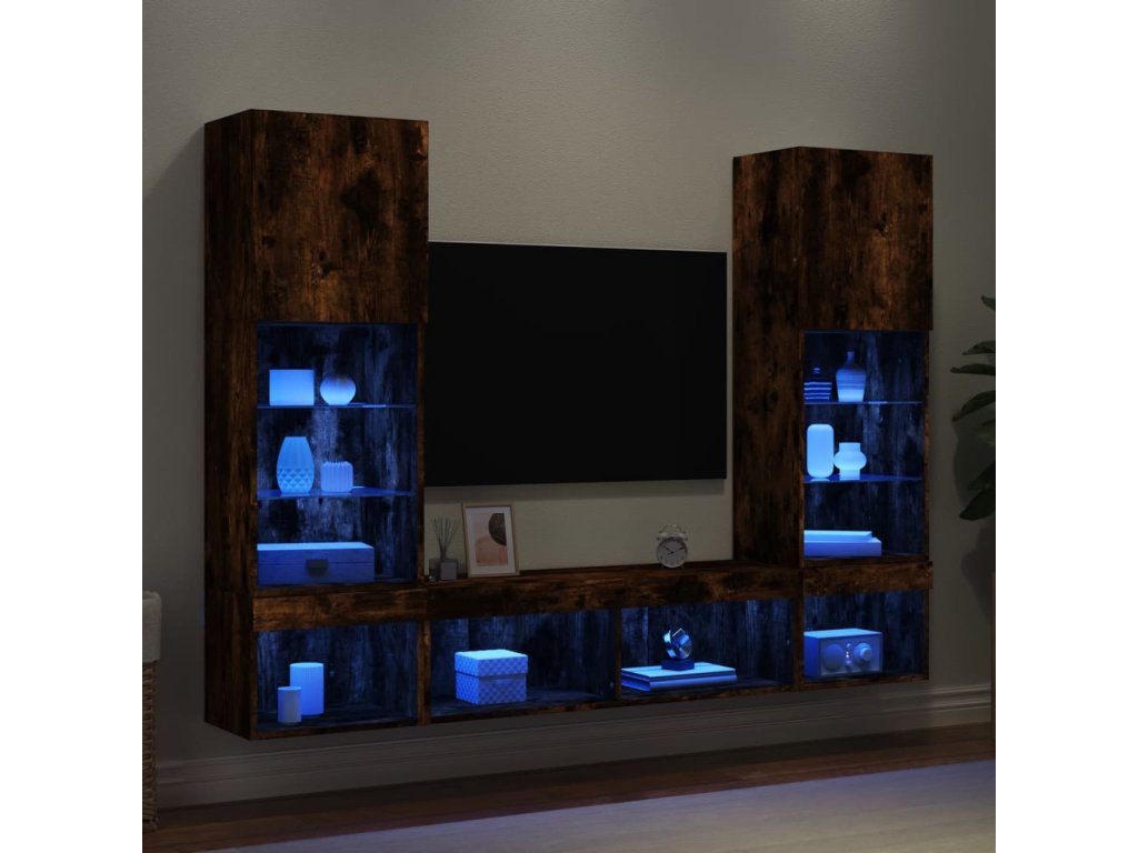 5dílná obývací stěna s LED kouřový dub kompozitní dřevo 3216694