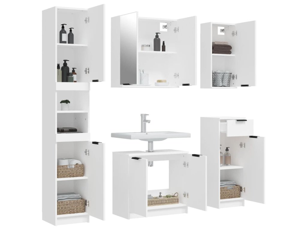 5dílná sada koupelnových skříněk bílá kompozitní dřevo 3115852