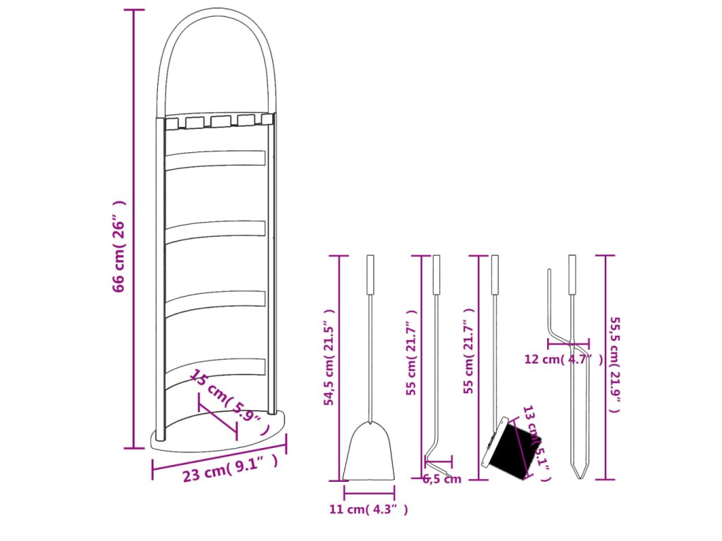 • Snadné použití: Stojan na krbové nářadí zajišťuje, že každé nářadí visí úhledně a vypadá velmi dekorativně a esteticky, zatímco klenutá rukojeť usnadňuje jeho uchopení a zabraňuje únavě.