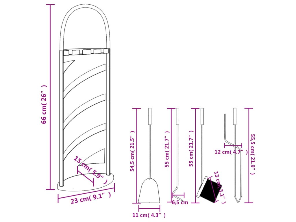 - Snadné použití: Stojan na krbové nářadí zajišťuje, že každé nářadí visí úhledně a vypadá velmi dekorativně a esteticky, zatímco klenutá rukojeť usnadňuje jeho uchopení a zabraňuje únavě.