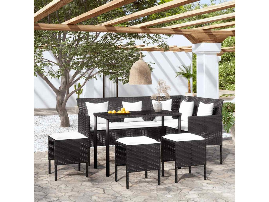 5dílná sedací souprava ve tvaru L s poduškami polyratan černá 318578
