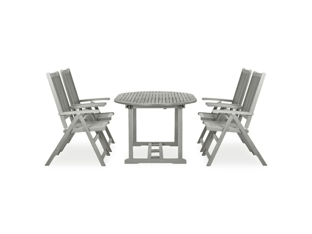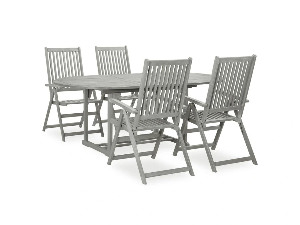 5dílná zahradní jídelní sada (150-200) x 100 cm masivní akácie šedá 3057907