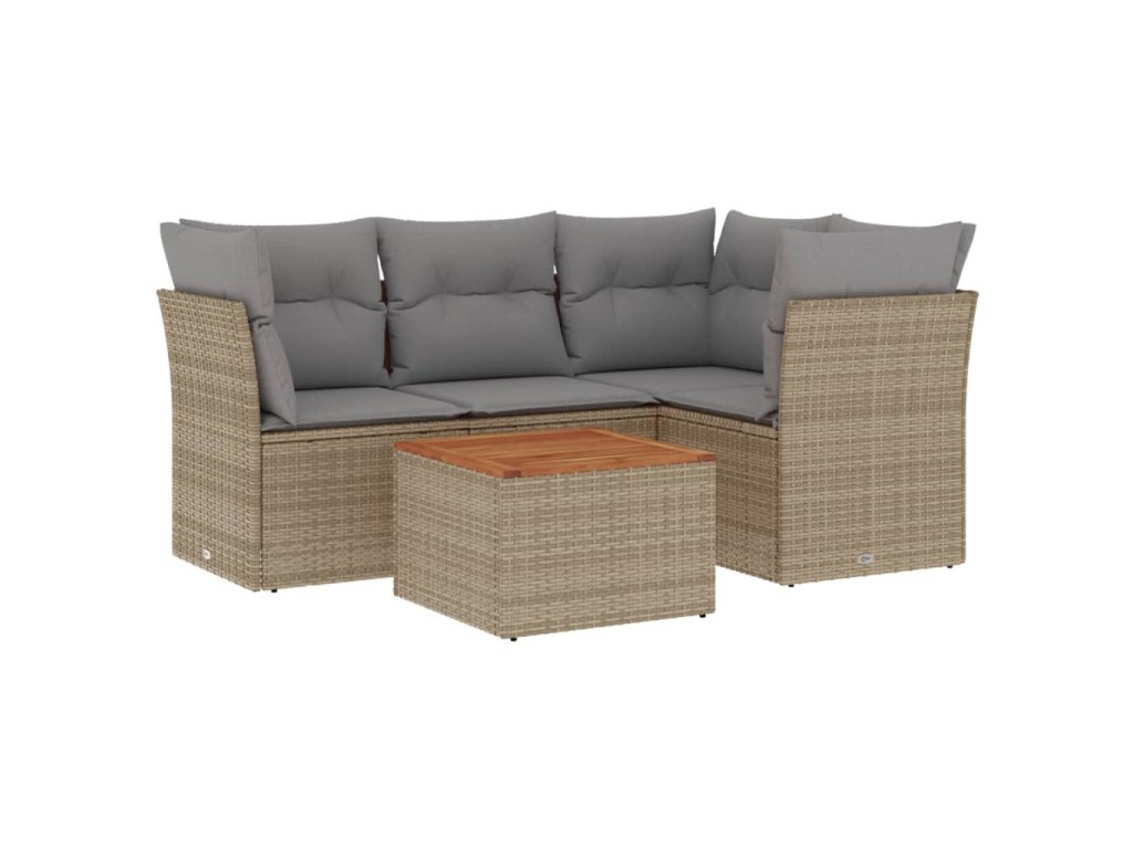 5dílná zahradní sedací souprava a podušky mix béžové polyratan 3255954
