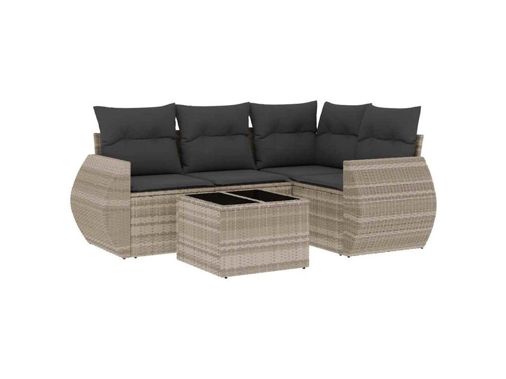5dílná zahradní sedací souprava a podušky světle šedá polyratan 3221321