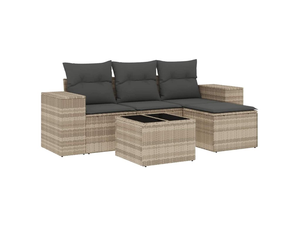 5dílná zahradní sedací souprava a podušky světle šedá polyratan 3222481