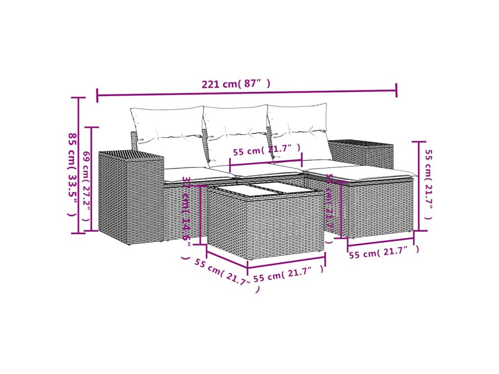 Tato zahradní sedací souprava je dokonalým doplňkem vaší zahrady, terasy nebo dvorku a poskytne vám pohodlné a příjemné místo, kde si můžete povídat s rodinou a přáteli nebo jen tak odpočívat a užívat si pobyt venku.