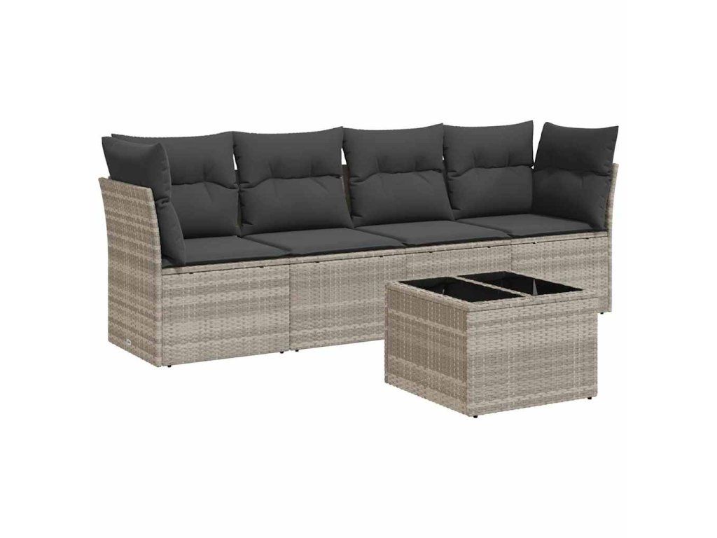 5dílná zahradní sedací souprava a podušky světle šedá polyratan 3249081