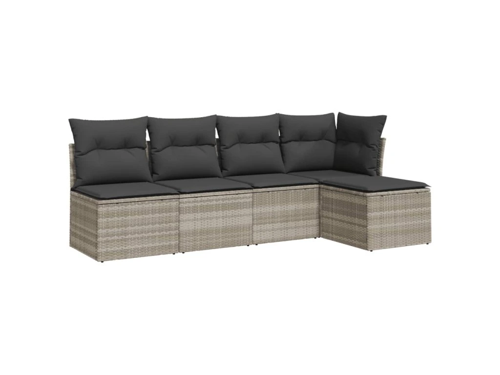 5dílná zahradní sedací souprava a podušky světle šedá polyratan 3249361