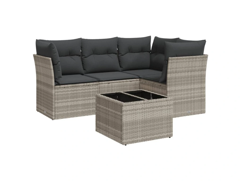 5dílná zahradní sedací souprava a podušky světle šedá polyratan 3249431