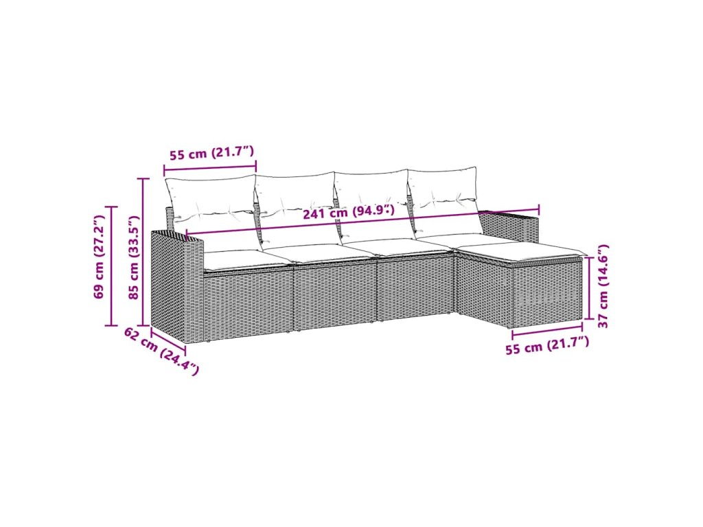 Tato zahradní sedací souprava je dokonalým doplňkem vaší zahrady, terasy nebo dvorku a poskytne vám pohodlné a příjemné místo, kde si můžete povídat s rodinou a přáteli nebo jen tak odpočívat a užívat si pobyt venku.