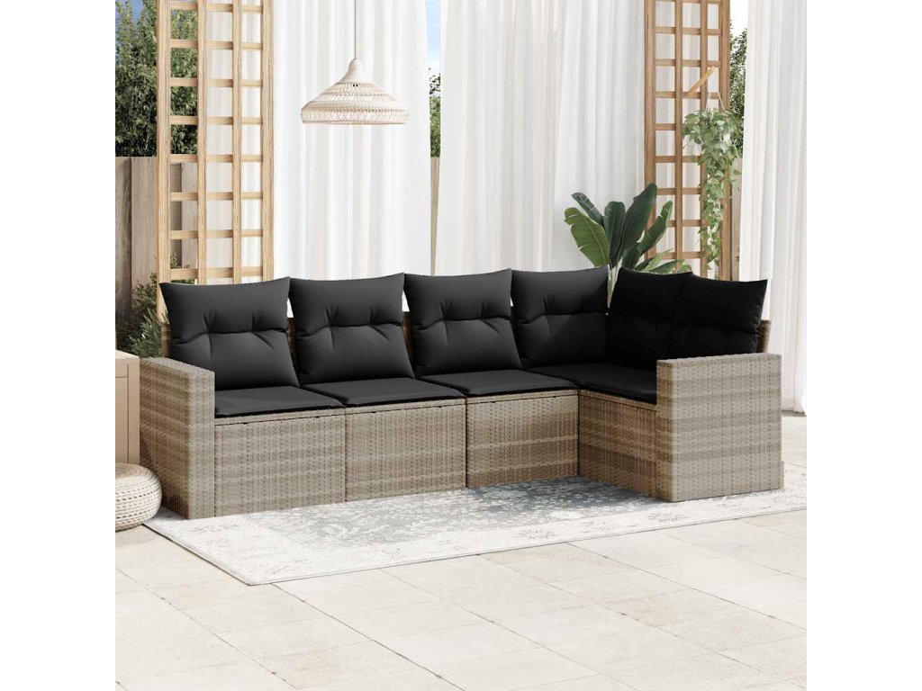 5dílná zahradní sedací souprava a podušky světle šedá polyratan 3251269