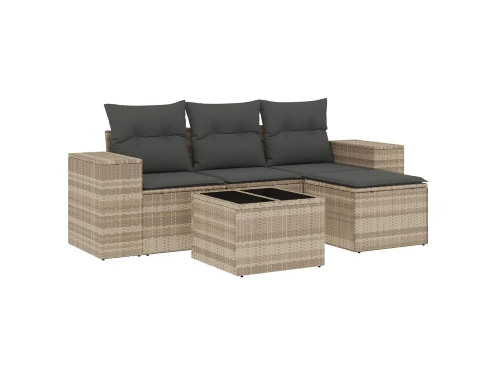 5dílná zahradní sedací souprava a podušky světle šedá polyratan 3254819