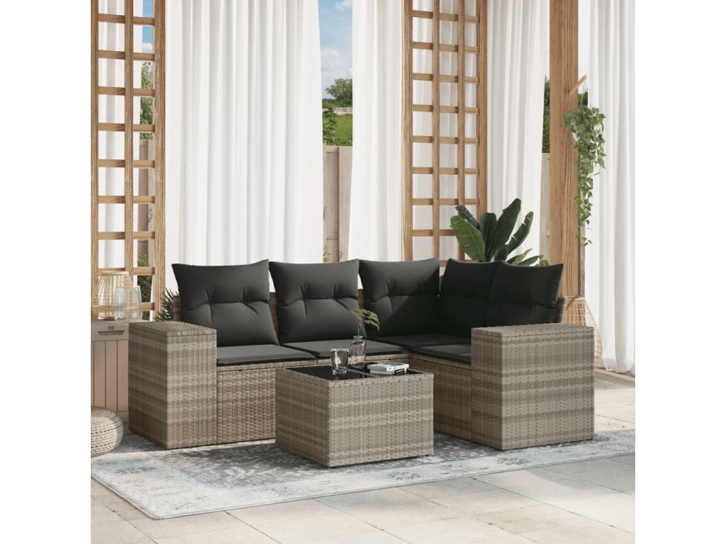 5dílná zahradní sedací souprava a podušky světle šedá polyratan 3254859