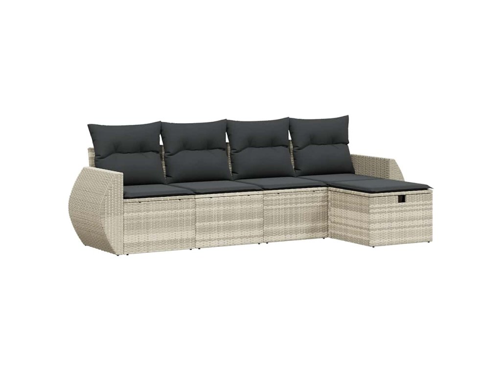 5dílná zahradní sedací souprava a podušky světle šedá polyratan 3264088