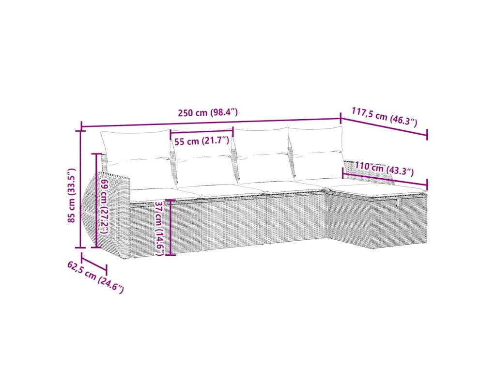 Tato zahradní sedací souprava je dokonalým doplňkem vaší zahrady, terasy nebo dvorku a poskytne vám pohodlné a příjemné místo, kde si můžete povídat s rodinou a přáteli nebo jen tak odpočívat a užívat si pobyt venku.