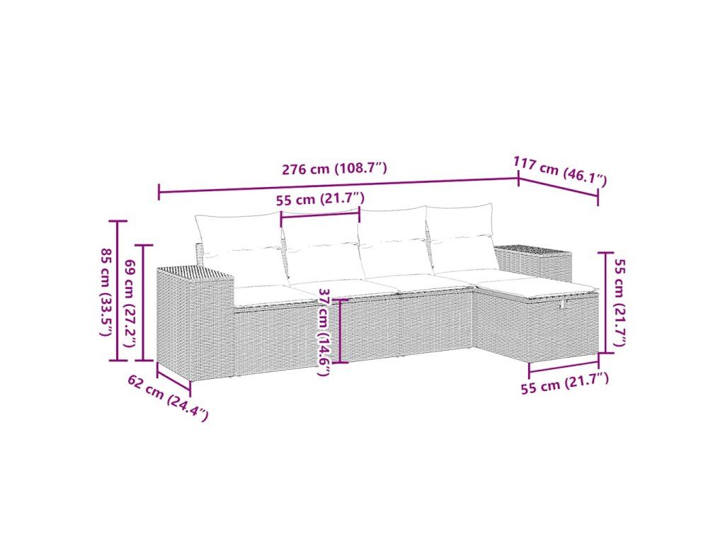 Tato zahradní sedací souprava je dokonalým doplňkem vaší zahrady, terasy nebo dvorku a poskytne vám pohodlné a příjemné místo, kde si můžete povídat s rodinou a přáteli nebo jen tak odpočívat a užívat si pobyt venku.