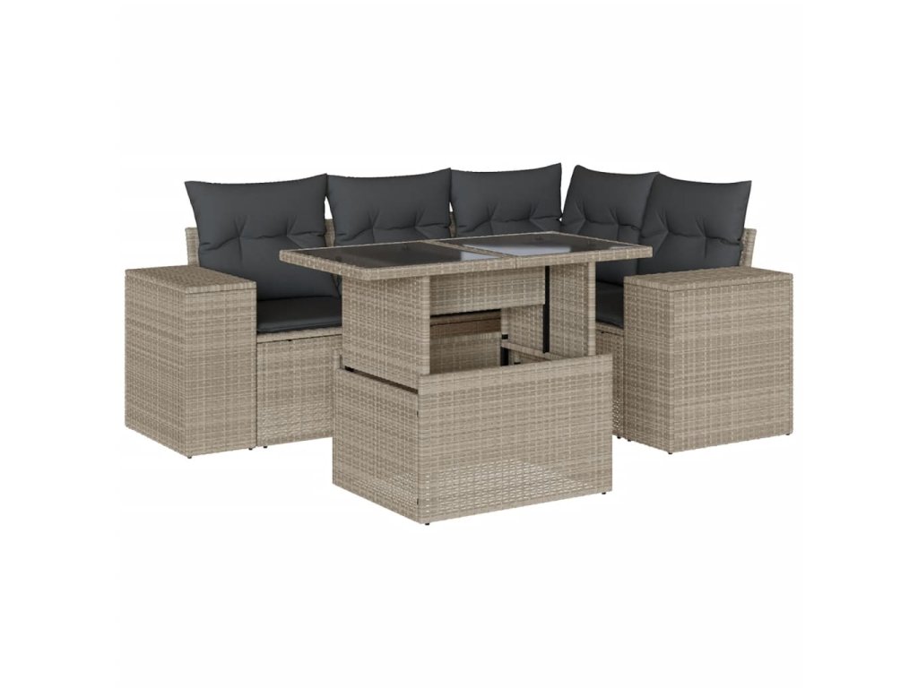 5dílná zahradní sedací souprava a podušky světle šedá polyratan 3269142