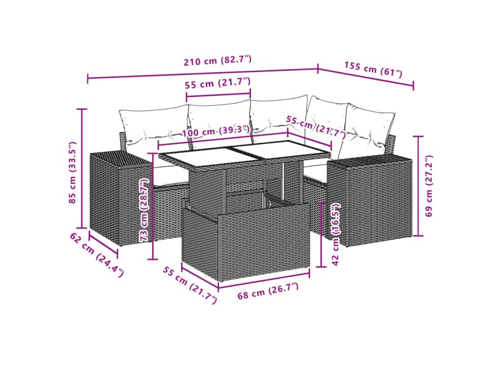 Tato zahradní sedací souprava je dokonalým doplňkem vaší zahrady, terasy nebo dvorku a poskytne vám pohodlné a příjemné místo, kde si můžete povídat s rodinou a přáteli nebo jen tak odpočívat a užívat si pobyt venku.