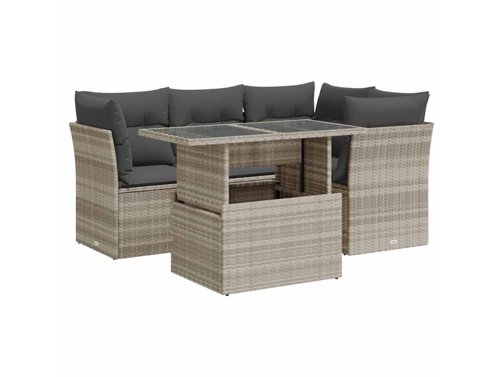 5dílná zahradní sedací souprava a podušky světle šedá polyratan 3326153