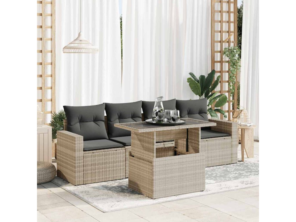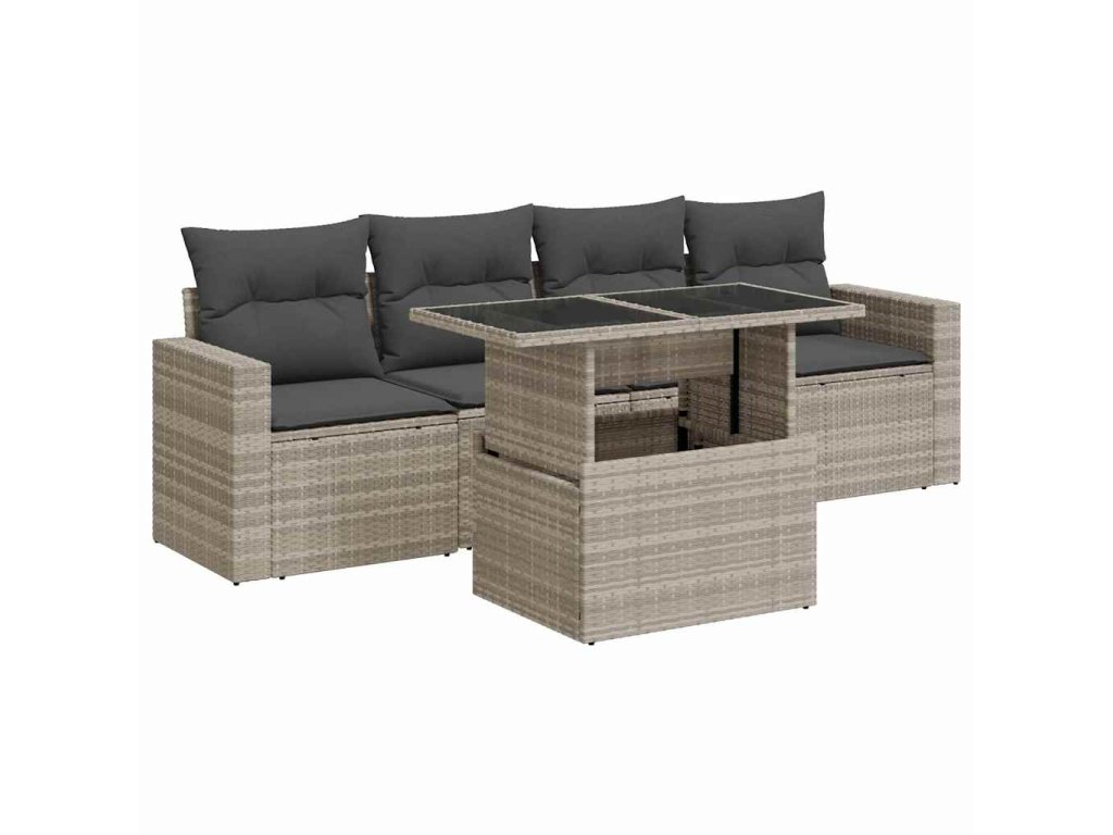 5dílná zahradní sedací souprava a podušky světle šedá polyratan 3326243
