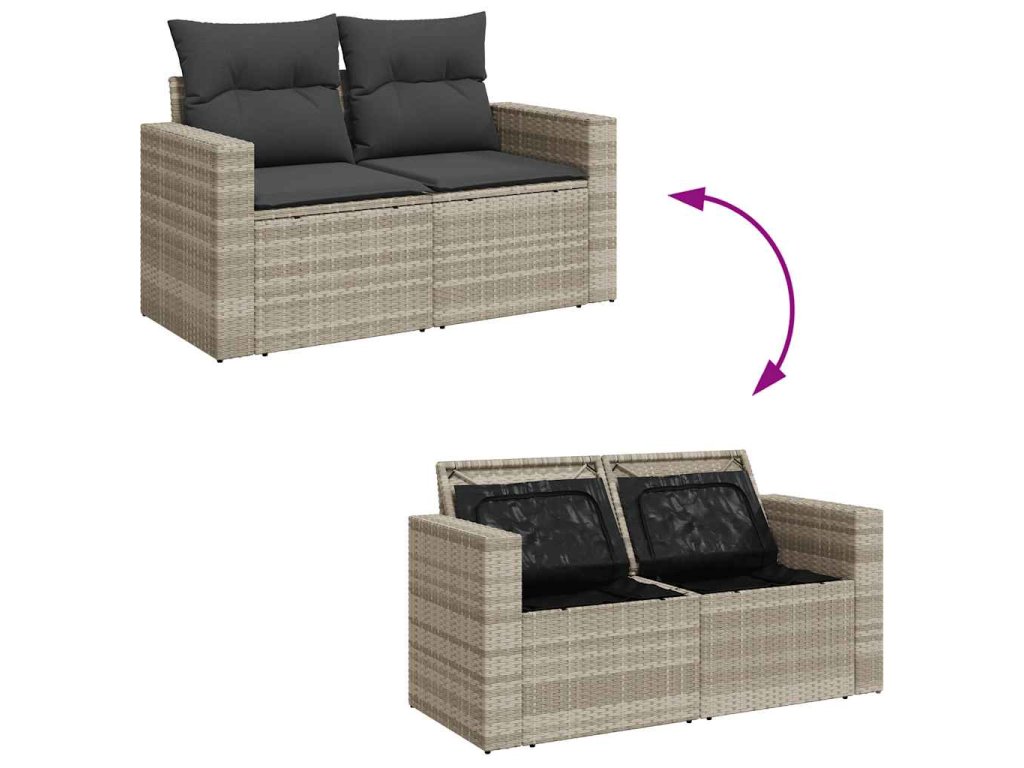 - Úložný prostor s voděodolným vakem: Každý zahradní sedací díl má úložný prostor pod sedákem, který je opatřen voděodolnou vložkou a poslouží vám k ukládání podušek, hraček a dalších věcí. Vnitřní vak má horní kryt a lze jej bezpečně připevnit k sedáku pomocí suchého zipu, což zaručí větší stabilitu.