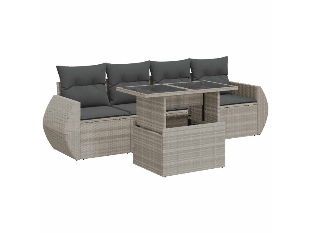 5dílná zahradní sedací souprava a podušky světle šedá polyratan 3326563