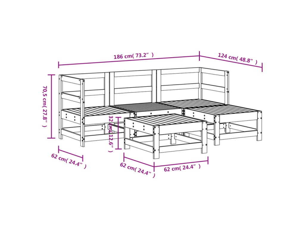 5dílná zahradní sedací souprava bílá masivní borové dřevo 3186173