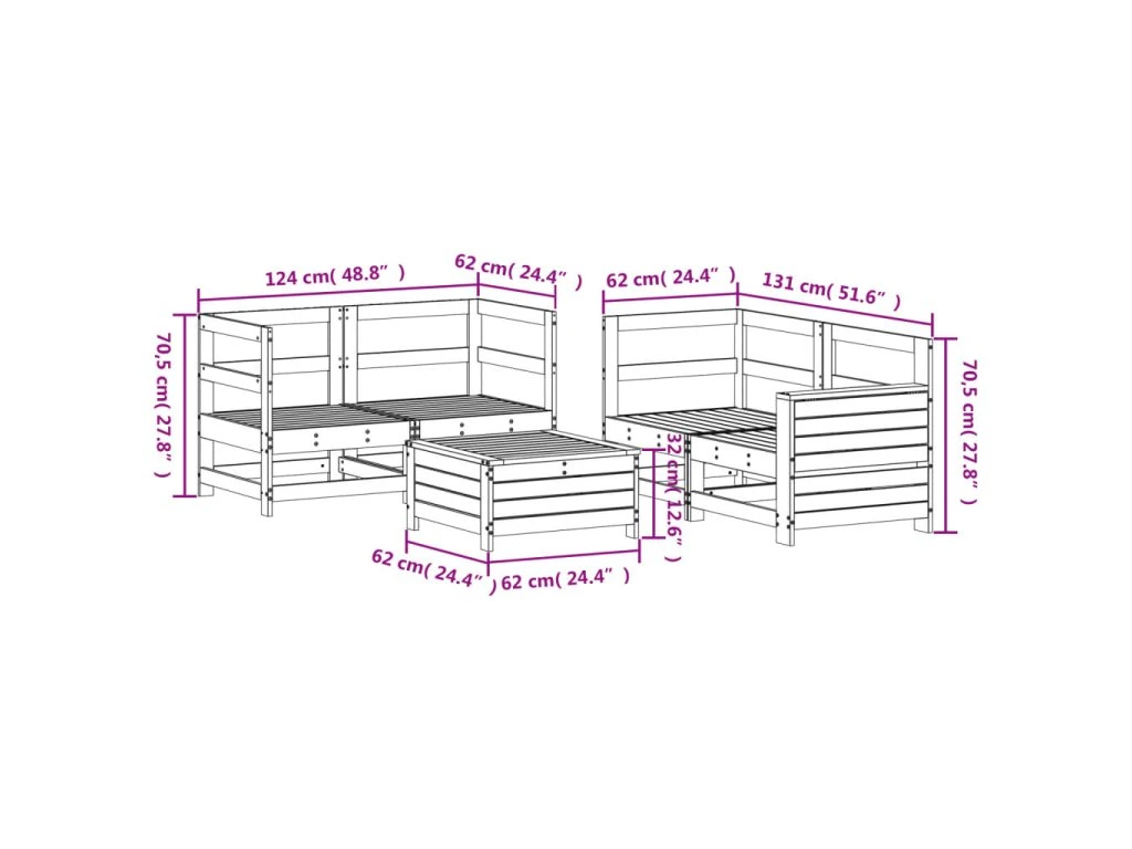 5dílná zahradní sedací souprava bílá masivní borové dřevo 3250813