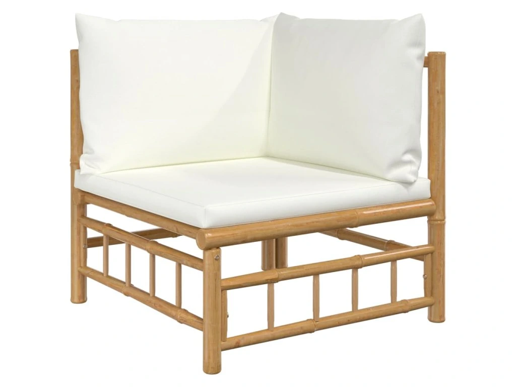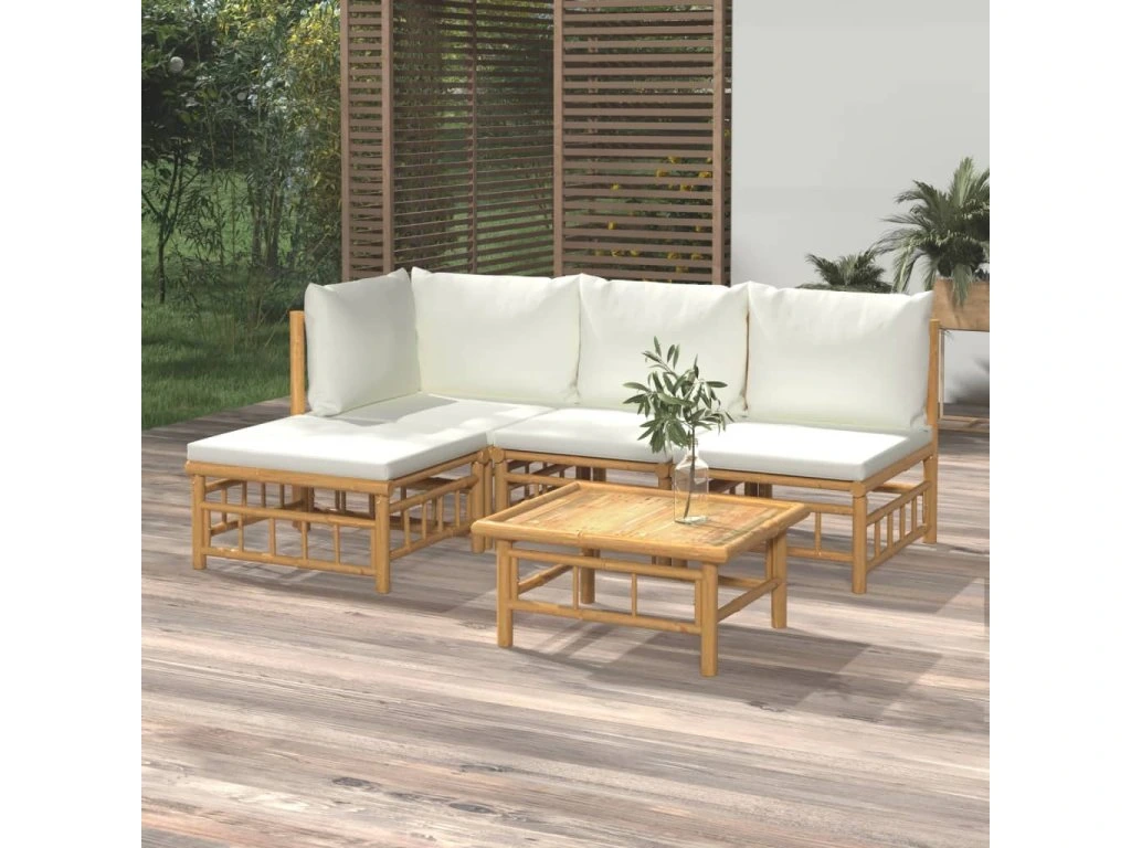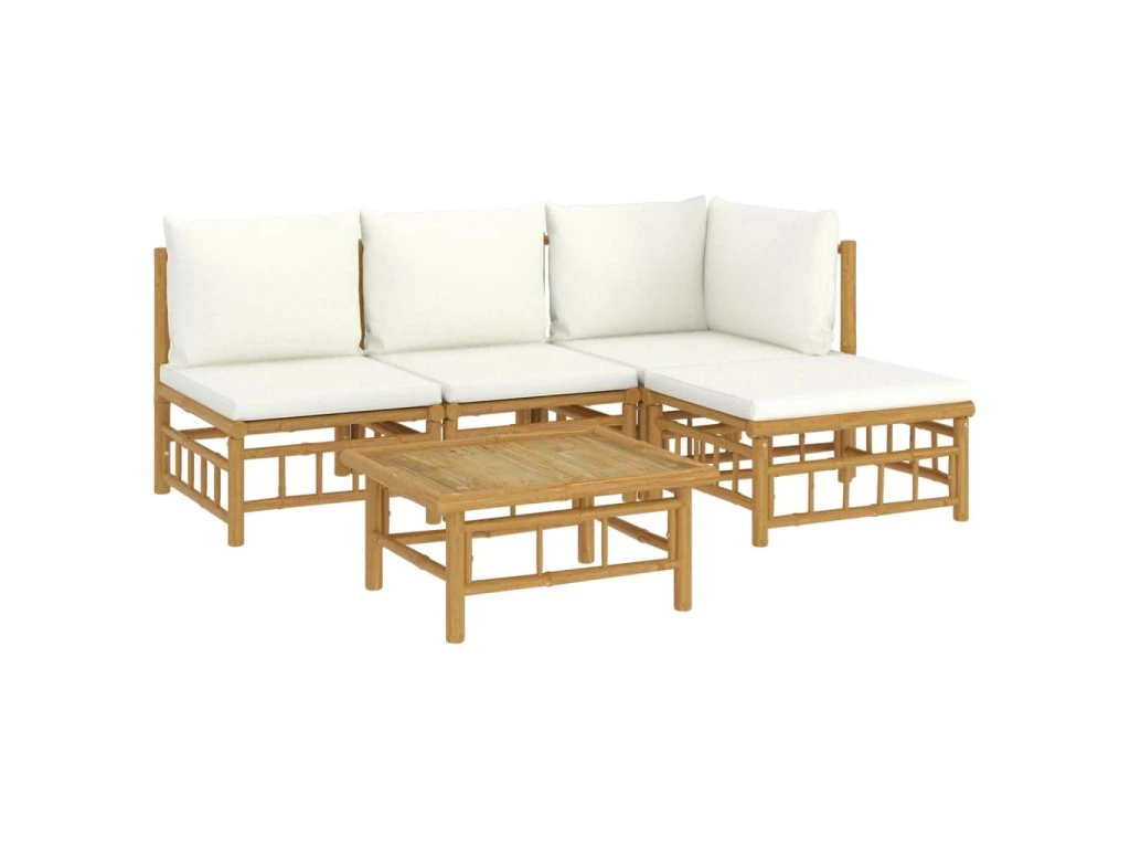 5dílná zahradní sedací souprava krémově bílé podušky bambus 3155177