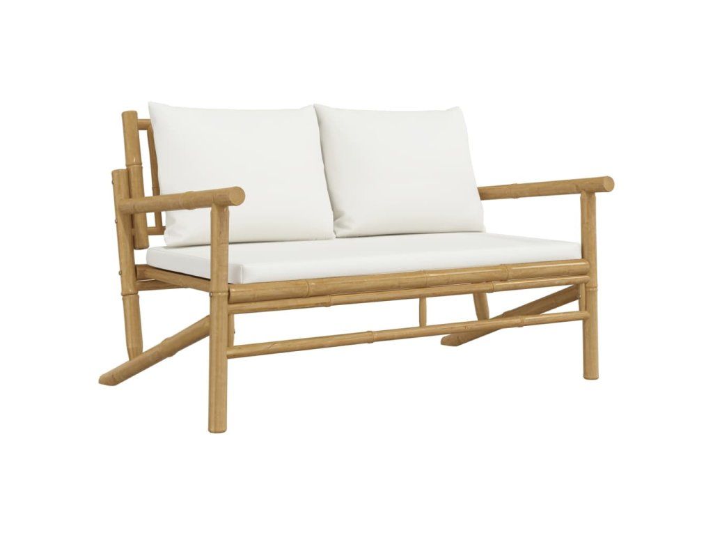 5dílná zahradní sedací souprava krémově bílé podušky bambus 3156475