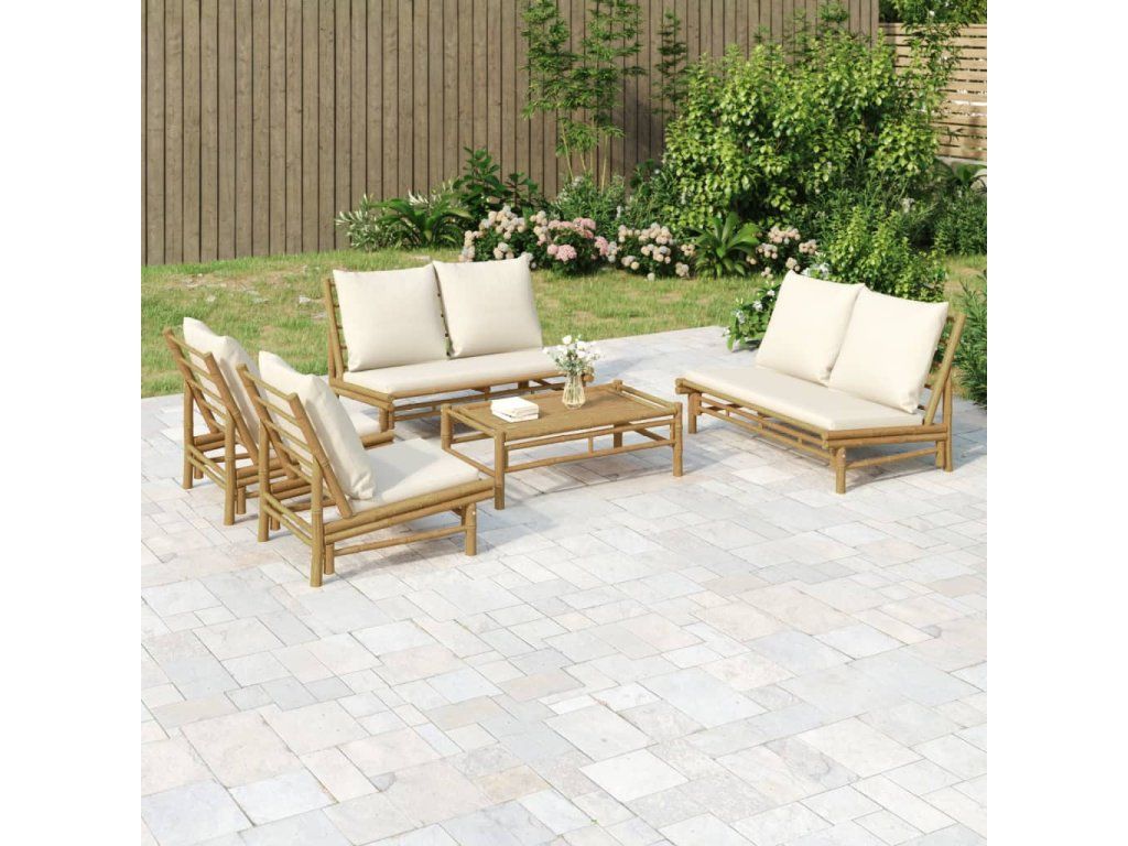 5dílná zahradní sedací souprava krémově bílé podušky bambus 3156485