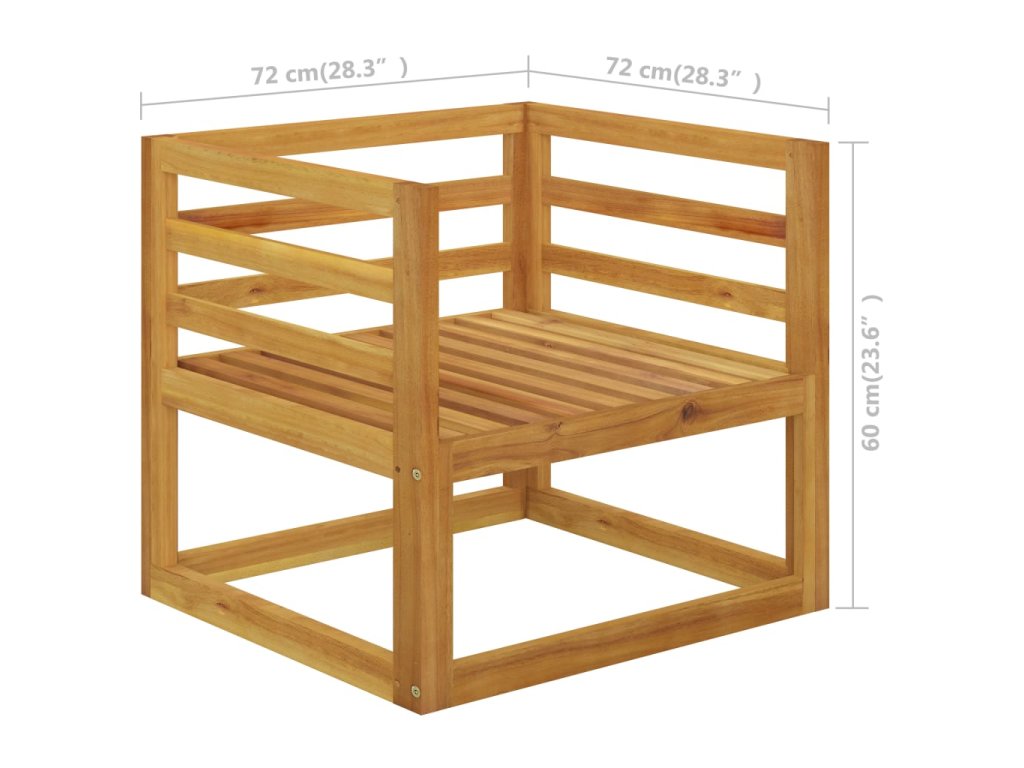 Rám z masivního akáciového dřeva je pevný, odolný a má dlouhou životnost. Dřevo je napuštěné olejem, sedací souprava je proto vhodná i pro venkovní použití. Odnímatelné podušky na sedáky a opěradla jsou silně polstrované, takže se vám na nich bude nesmírně dobře sedět. Součástí balení je také konferenční stolek v unikátním laťkovém provedení. Nevšední modulární design vám umožní všechny díly přestavovat a upravovat dle momentálních potřeb.