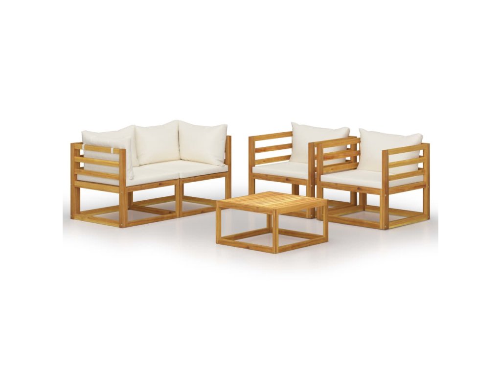 5dílná zahradní sedací souprava krémové podušky masivní akácie 3057640