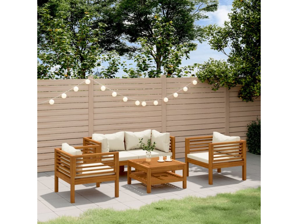 5dílná zahradní sedací souprava krémové podušky masivní akácie 3086934