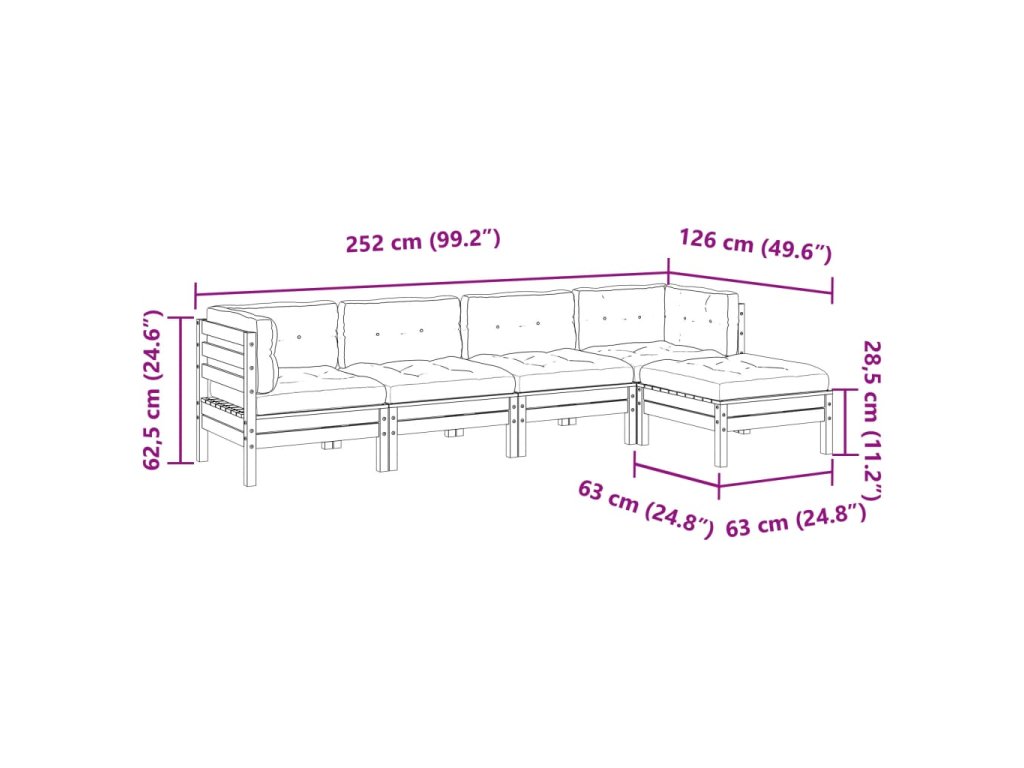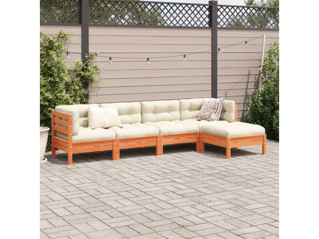 5dílná zahradní sedací souprava podušky voskově hnědá borovice 3299393