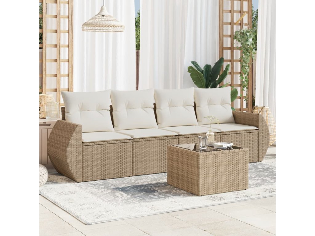 5dílná zahradní sedací souprava s poduškami béžová polyratan 3221087