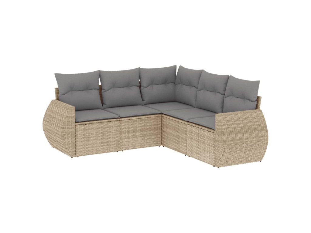 5dílná zahradní sedací souprava s poduškami béžová polyratan 3221348