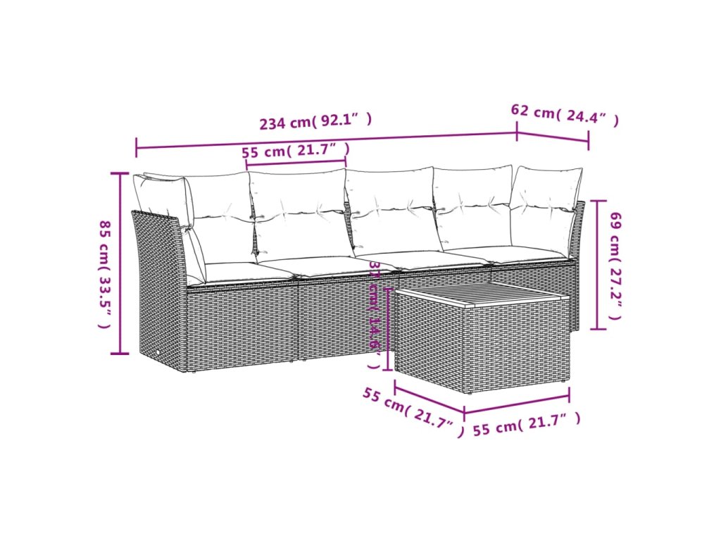 Tato zahradní sedací souprava je dokonalým doplňkem vaší zahrady, terasy nebo dvorku a poskytne vám pohodlné a příjemné místo, kde si můžete povídat s rodinou a přáteli nebo jen tak odpočívat a užívat si pobyt venku.