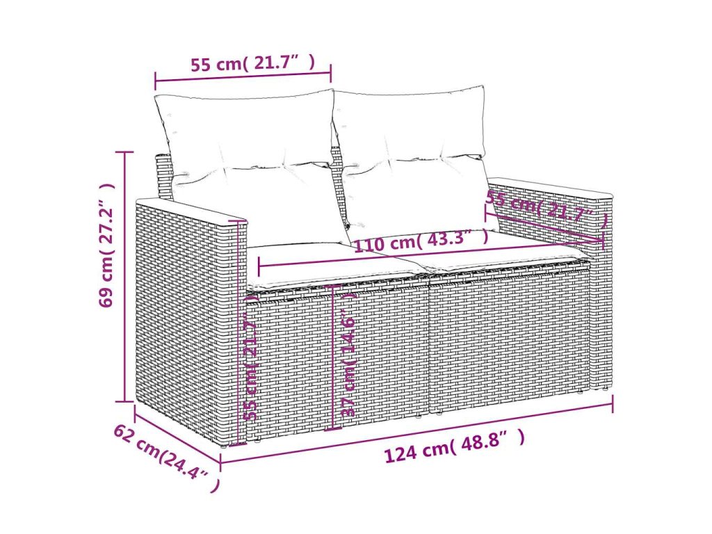 Tato zahradní sedací souprava je dokonalým doplňkem vaší zahrady, terasy nebo dvorku a poskytne vám pohodlné a příjemné místo, kde si můžete povídat s rodinou a přáteli nebo jen tak odpočívat a užívat si pobyt venku.
