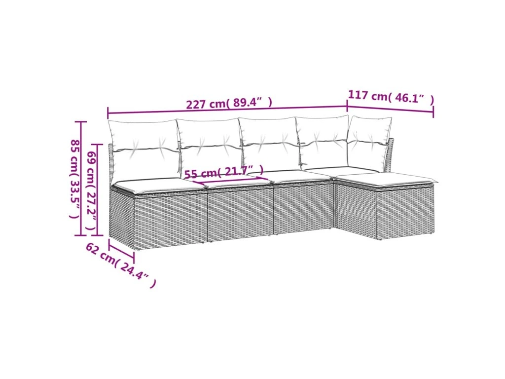 Tato zahradní sedací souprava je dokonalým doplňkem vaší zahrady, terasy nebo dvorku a poskytne vám pohodlné a příjemné místo, kde si můžete povídat s rodinou a přáteli nebo jen tak odpočívat a užívat si pobyt venku.