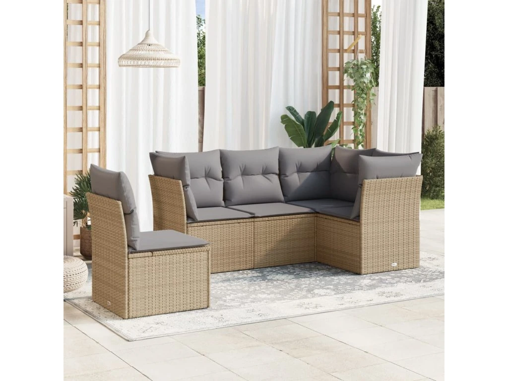 5dílná zahradní sedací souprava s poduškami béžová polyratan 3249478
