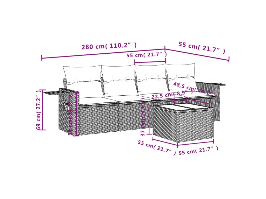 - Modulární design: Tato sada venkovního nábytku se vyznačuje modulární konstrukcí, je tedy zcela flexibilní a lze ji snadno přemisťovat, takže si můžete uspořádat venkovní nábytek dle vašich potřeb.