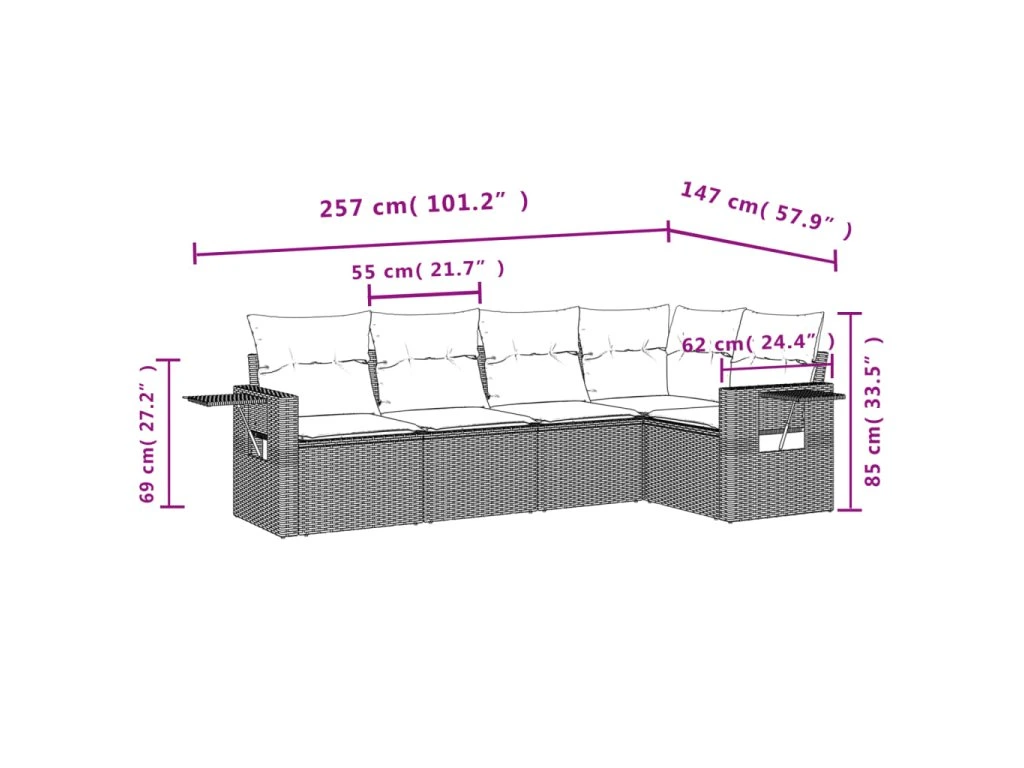 - Modulární design: Tato sada venkovního nábytku se vyznačuje modulární konstrukcí, je tedy zcela flexibilní a lze ji snadno přemisťovat, takže si můžete uspořádat venkovní nábytek dle vašich potřeb.