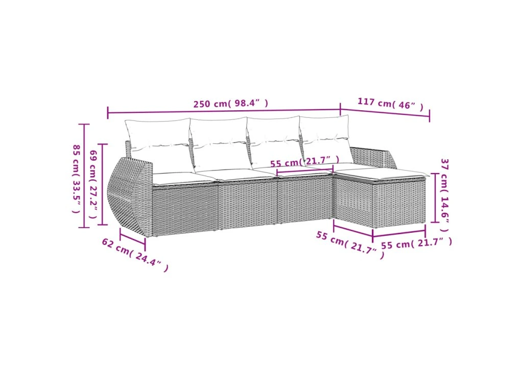 Tato zahradní sedací souprava je dokonalým doplňkem vaší zahrady, terasy nebo dvorku a poskytne vám pohodlné a příjemné místo, kde si můžete povídat s rodinou a přáteli nebo jen tak odpočívat a užívat si pobyt venku.