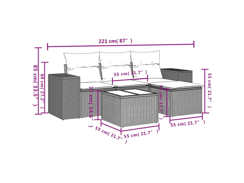 Tato zahradní sedací souprava je dokonalým doplňkem vaší zahrady, terasy nebo dvorku a poskytne vám pohodlné a příjemné místo, kde si můžete povídat s rodinou a přáteli nebo jen tak odpočívat a užívat si pobyt venku.