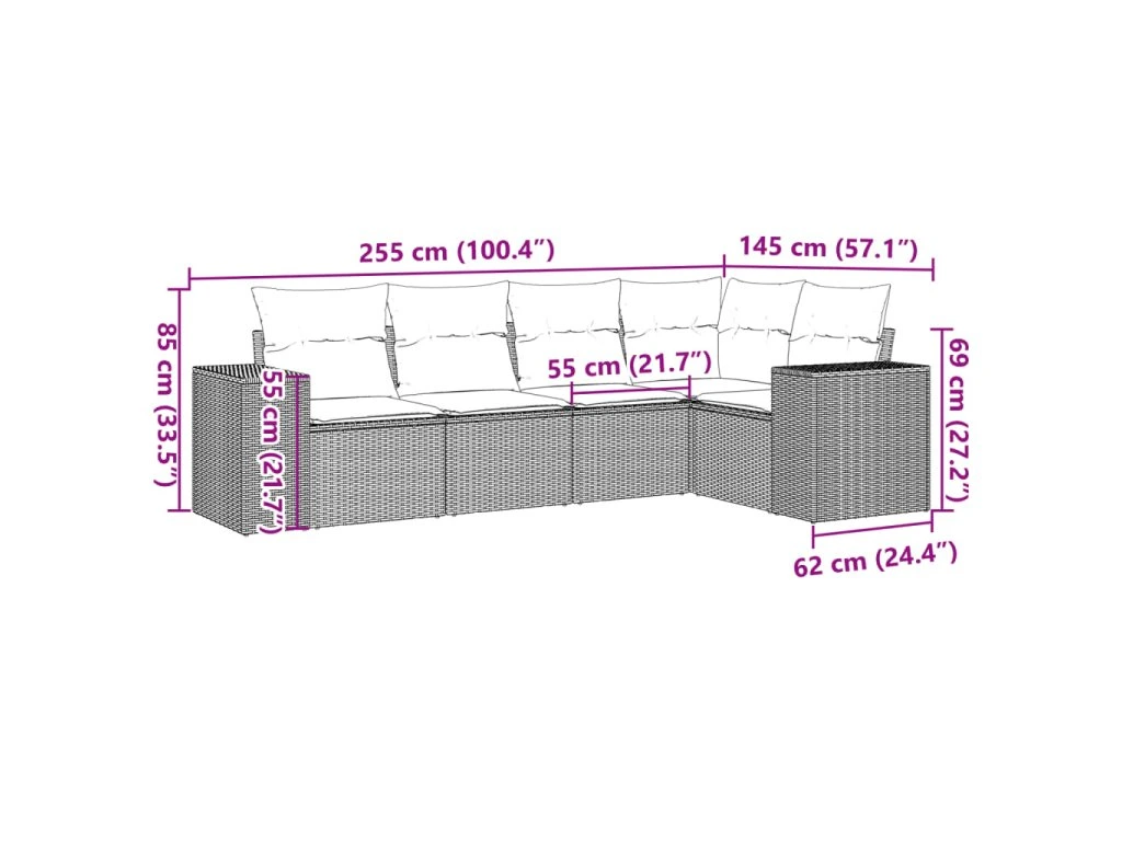 Tato zahradní sedací souprava je dokonalým doplňkem vaší zahrady, terasy nebo dvorku a poskytne vám pohodlné a příjemné místo, kde si můžete povídat s rodinou a přáteli nebo jen tak odpočívat a užívat si pobyt venku.